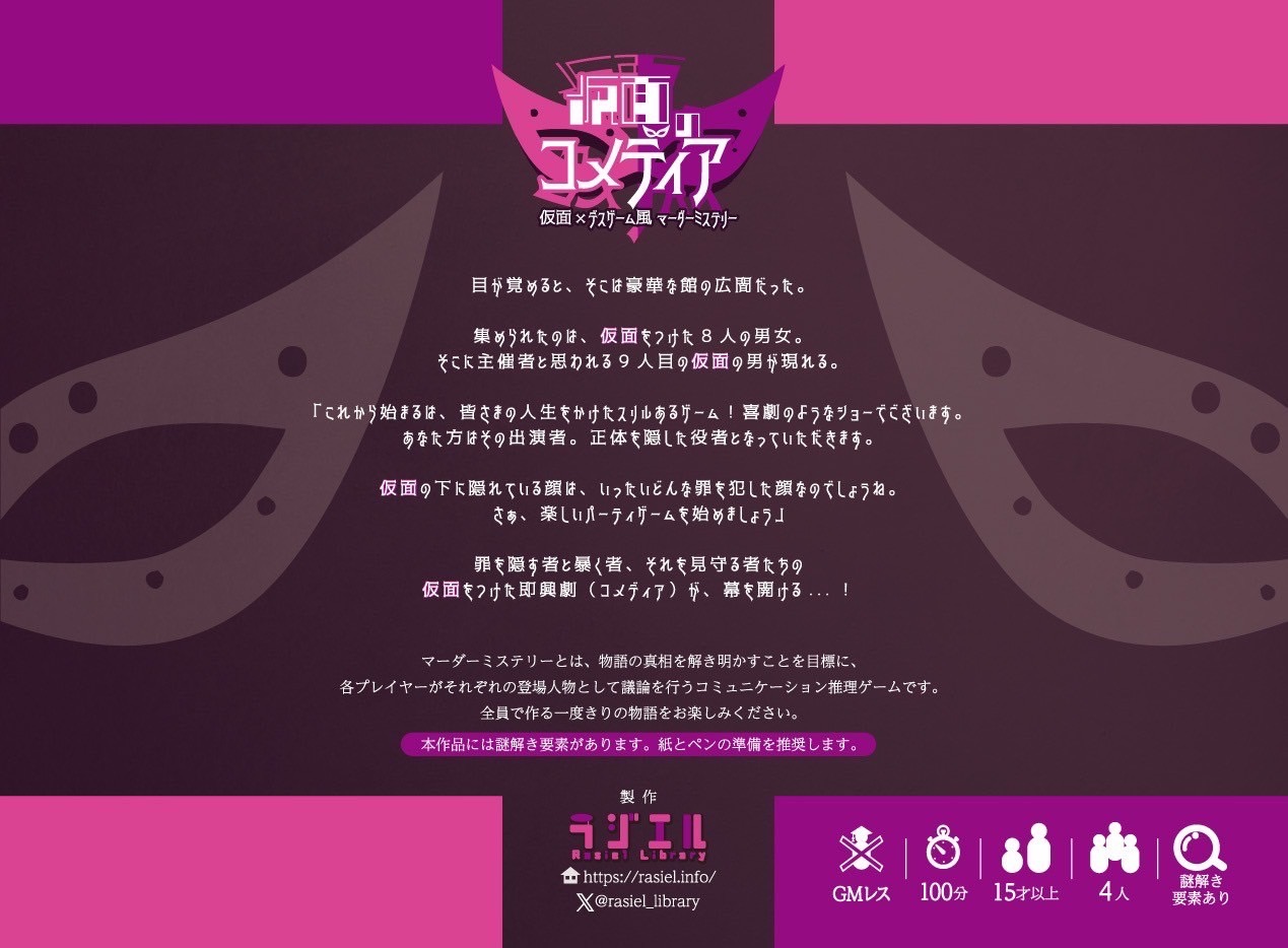 罪を隠す者と暴く者、それを見守る者たちの仮面をつけた即興劇(コメディア)が、幕を開ける…!