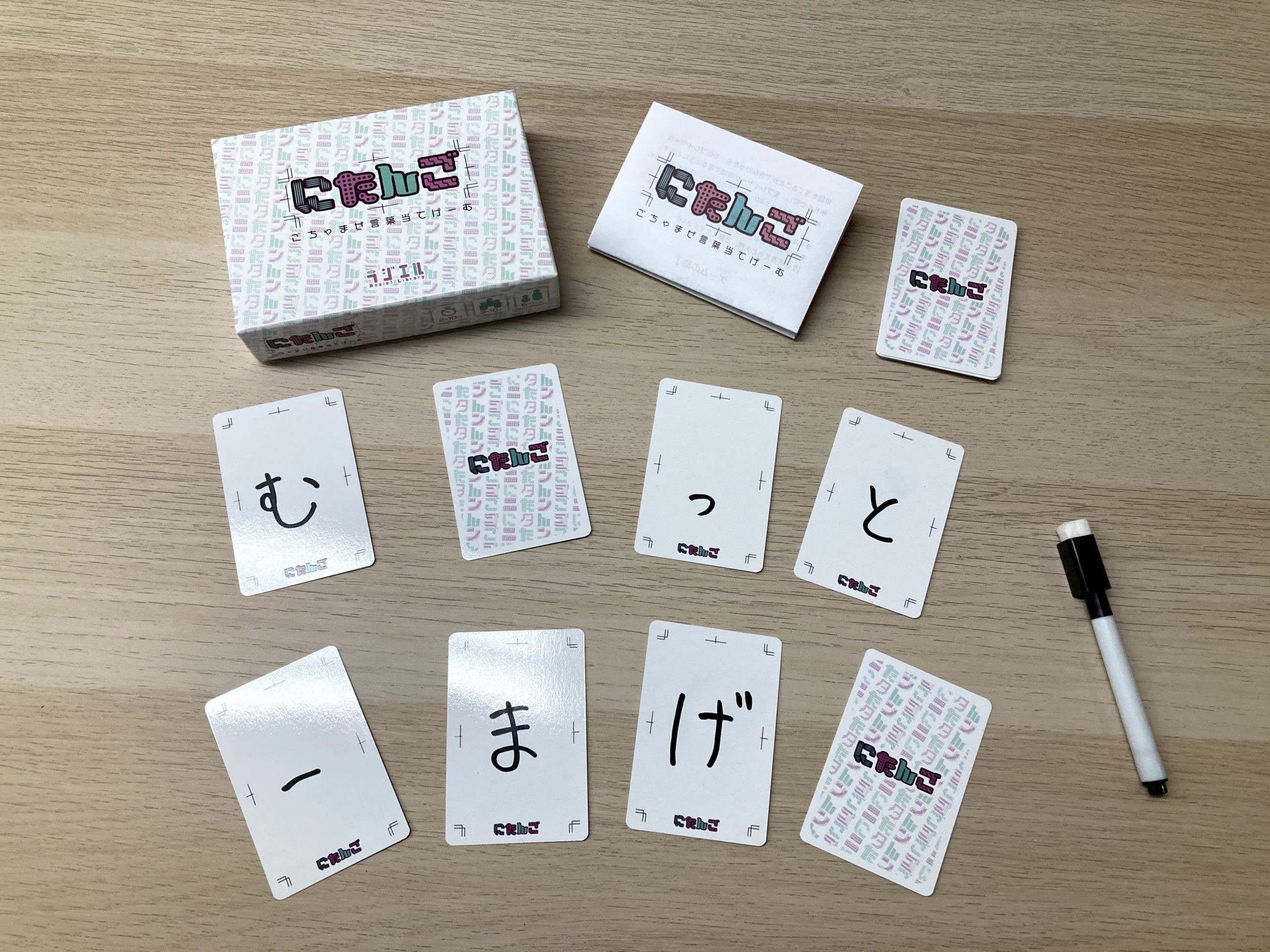 「ひらがな一文字」が書かれたカードを額にあてればゲームが始まる。